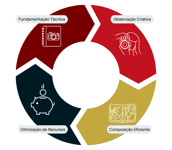 Depois de anos ajudando entusiastas da fotografia a superarem suas frustrações com equipamentos caros e técnicas complexas, desenvolvemos a metodologia F.O.C.O. para atender às suas necessidades. Baseado em quatro pilares fundamentais, essa metodologia oferece uma abordagem prática e acessível para transformar sua paixão em arte profissional.